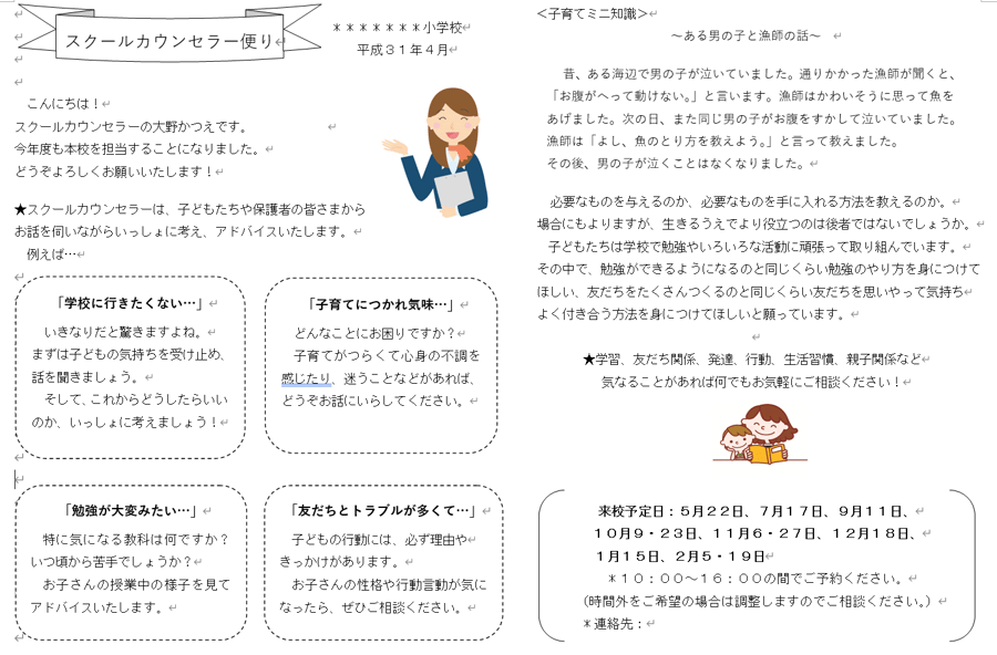 2019年4月スクールカウンセラー便り